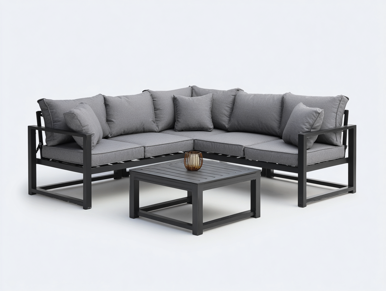 Outdoor Sofa corner set aluminium frame 210x210x75 cm - dark grey - modern garden design