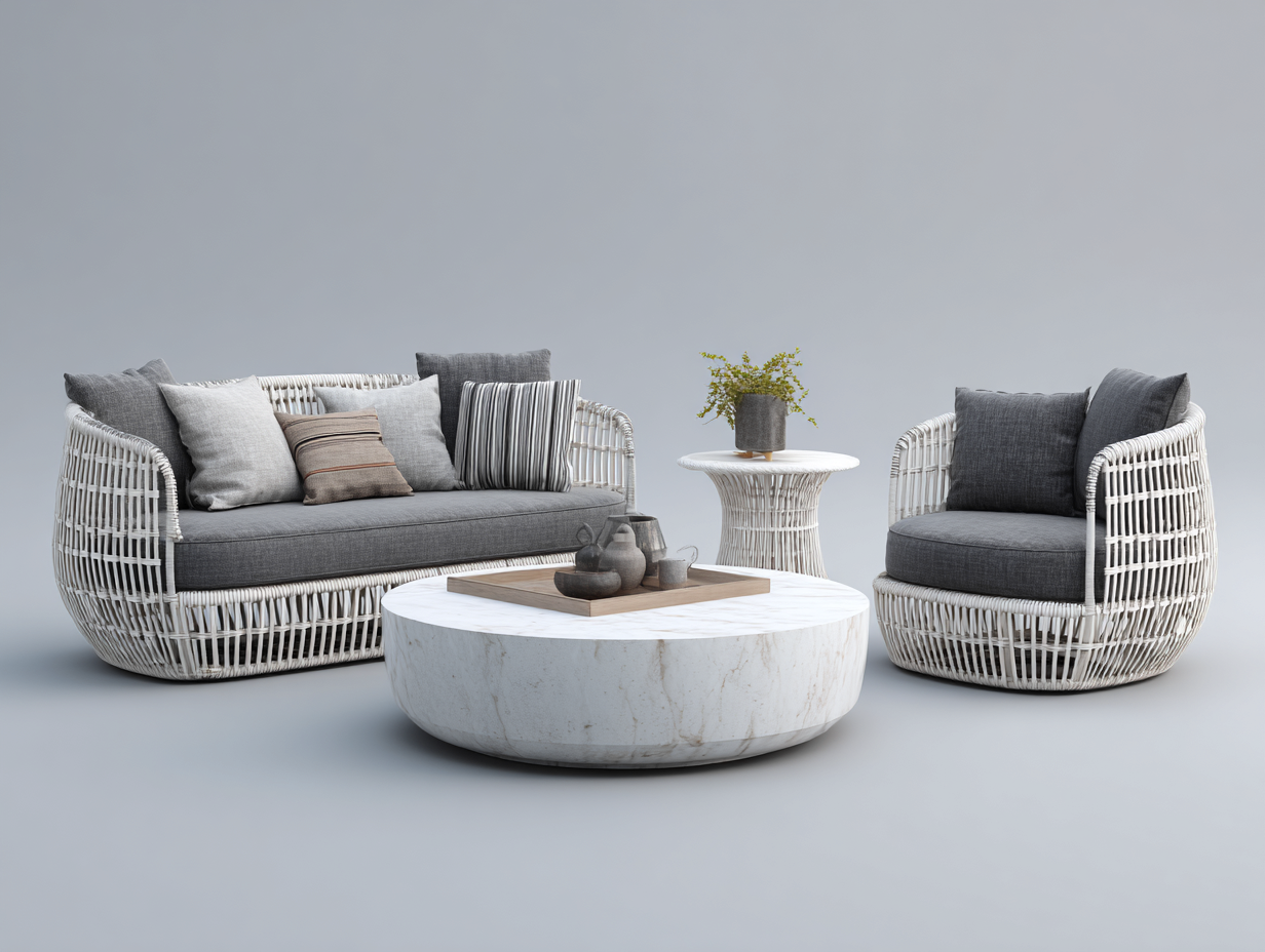 Outdoor Sofas woven outdoor sofa set with tables 220x90x75 cm - grey-white - contemporary outdoor design