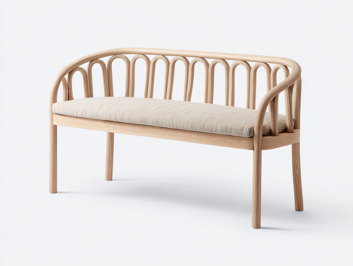 Outdoor Bench solid wood with seat cushion 150x55x78 cm - natural wood - curved back design