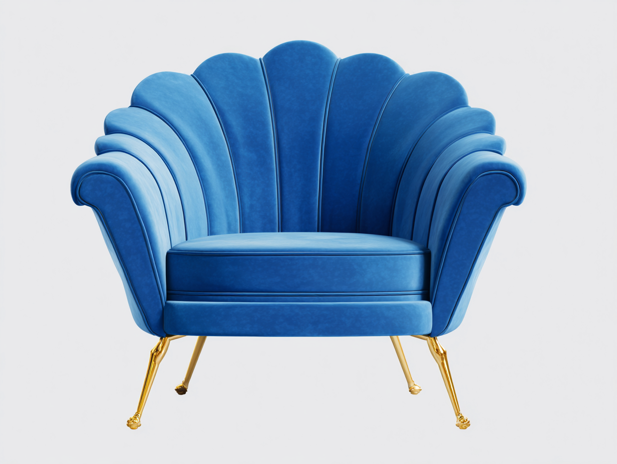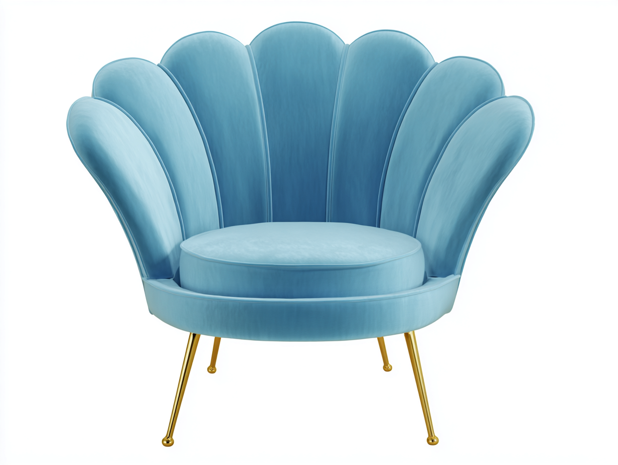 Armchair velvet upholstery 78x75x82 cm - blue-gold - decorative shell design